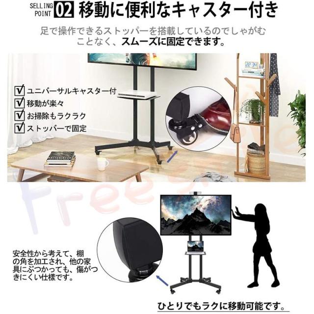 当日発送 テレビ台 テレビスタンド ハイタイプ キャスター付き 壁寄せ 角度調節 高さ調節 32?70型 対応 おしゃれ スリム リビング オフィス 会議 病院 学校