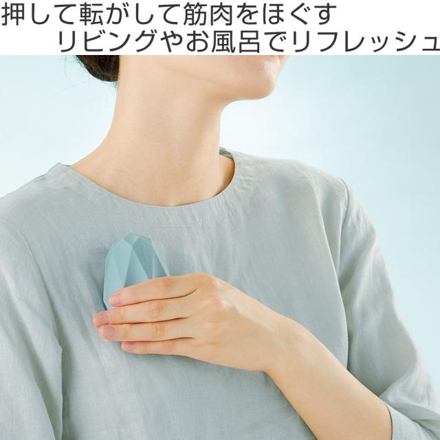 日々の暮らしの中で溜まっているボディの疲れをやわらげてくれるセルフケアアイテムです。シリコンの優しい触り心地でツボ押しができる程よい硬さです。コリが気になるところに当て、体重をかけると表面の凸凹形状が押しほぐしてくれます。首・胸元・背中・脚・足裏等にお使いいただけます。優しい色合いで、リビングや寝室に置いてもお部屋に馴染みます。手の届くところに置いておき、気になった時に気軽にケアできます。
