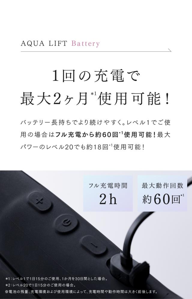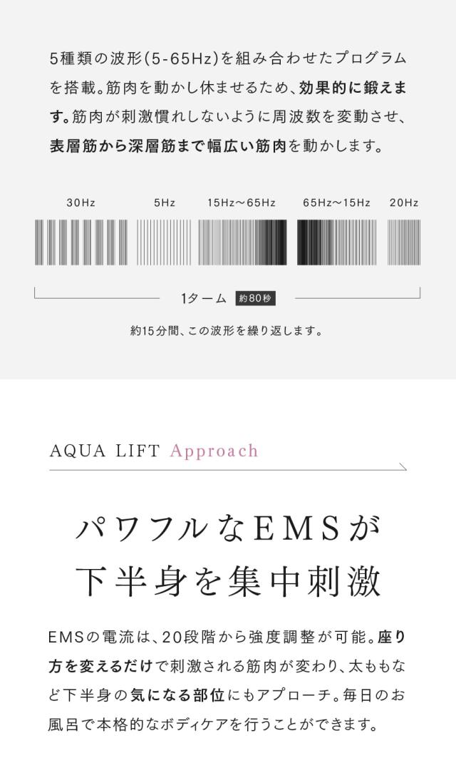 また水分は電気を通しやすくする導電性が高いため、お風呂の中で使用する「AQUA LIFT」は