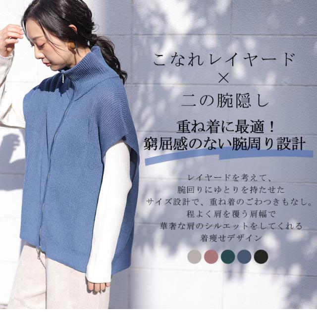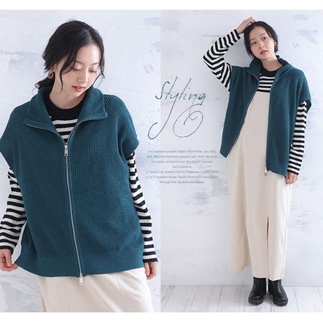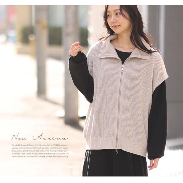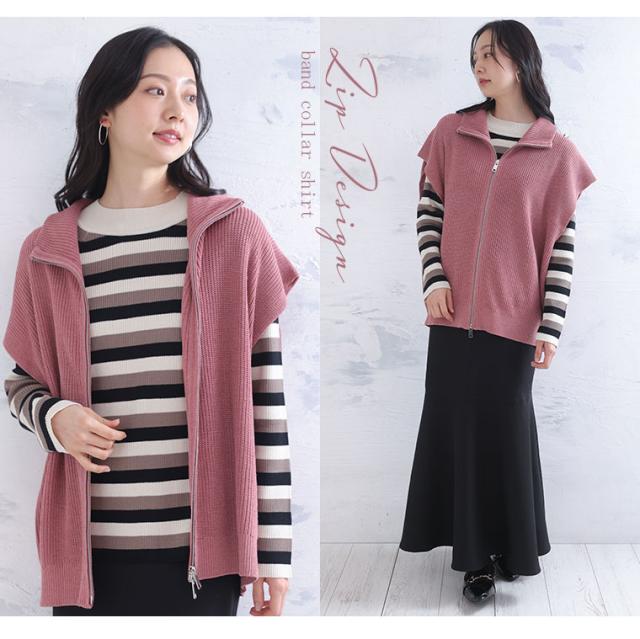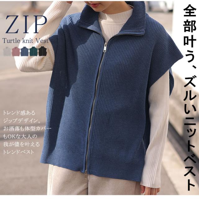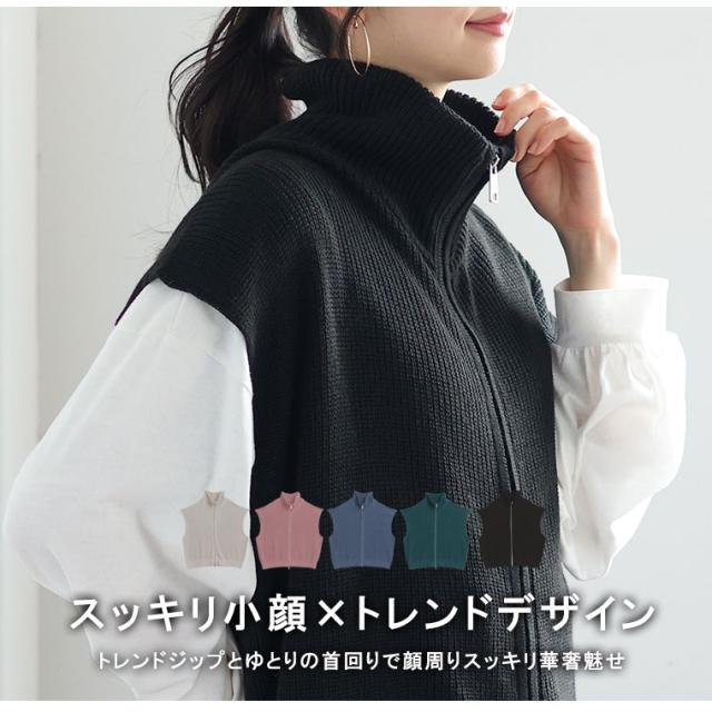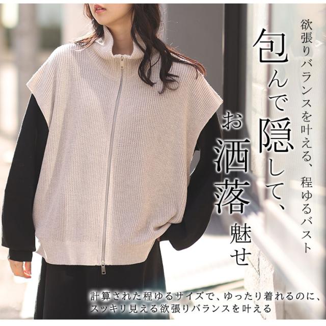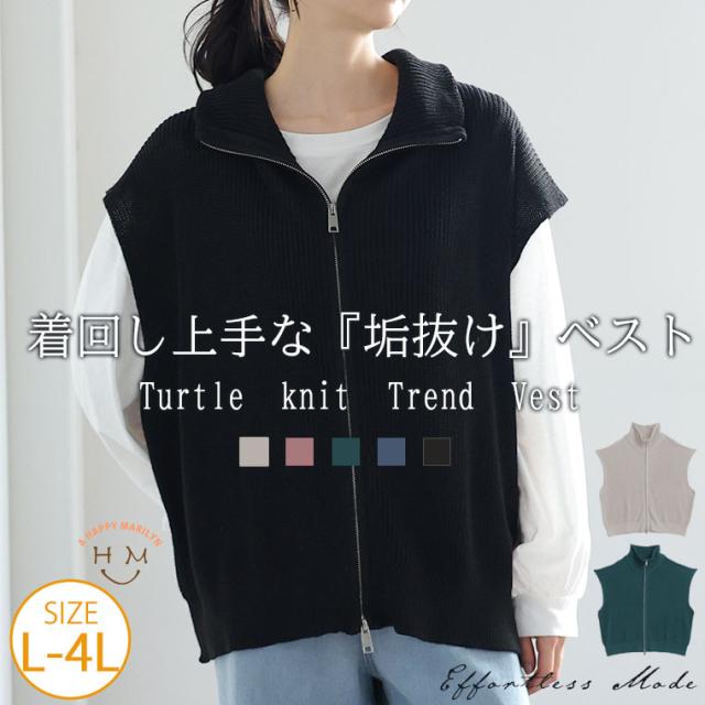 新作 大きいサイズ レディース トップス | 【effortless mode】着こなし上手 ジップフライ オフタートル ニットベスト トップス [860420] LL 3L 4L