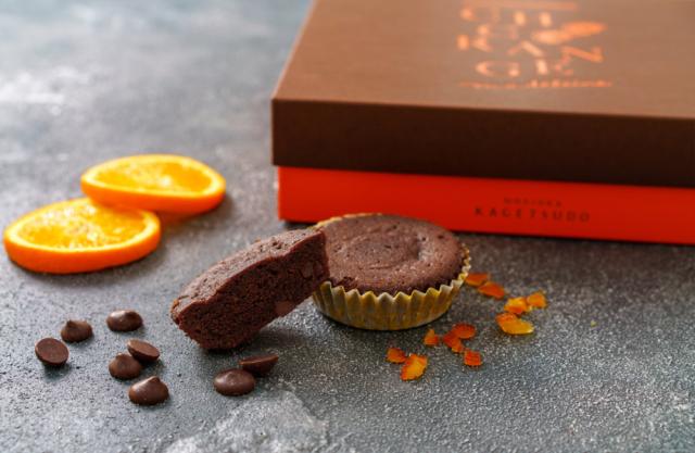 ガーナ産カカオ豆を使用したチョコレートとビターな味わいのチョコレートを混ぜ込んだ生地に、シロップ漬けのオレンジカットを入れてしっとり焼き上げたプランタンブランby花月堂新作チョコマドレーヌです。