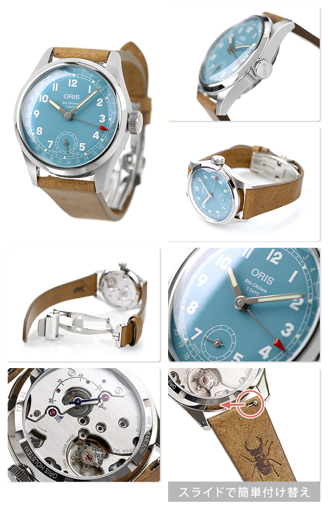 オリス ビッグクラウン キャリバー473 手巻き 腕時計 ブランド メンズ ORIS 01 473 7786 4065-07 5 19 22FC アナログ ブルー オリーブブラウン スイス製