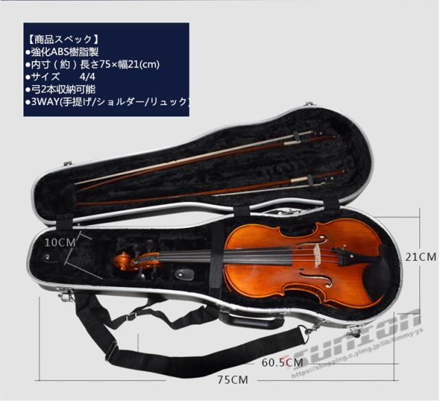 VIOLIN CASE バイオリンケース 楽器 管楽器 強化ABS樹脂製 軽量 堅牢 ケース クッション付き 3WAY リュック ショルダー 手提げ