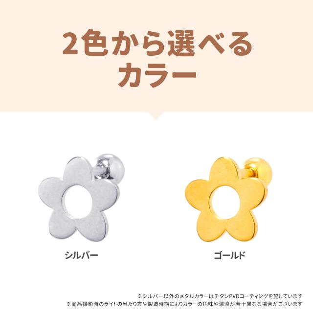 フラワー メタル プレート ストレートバーベル 18G サージカルステンレス ヘリックス 軟骨ピアス ボディピアス 花 モチーフ フラット