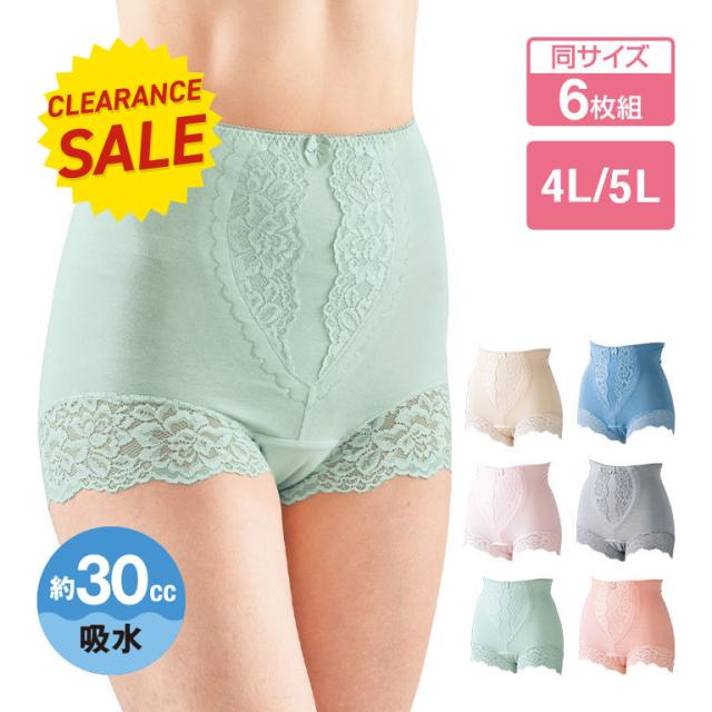 シルエット すっきり レースショーツ 6枚セット 4L 5L - お腹 補正 引き締め 軽失禁 尿モレ 吸水 レディース ショーツ セット 約30cc ハイウエスト 補正ショーツ 深ばきショーツ ポッコリお腹 すっぽり 深ばき オシャレ 下腹 着心地 ラクチン まとめ買い 洗い替え 635598