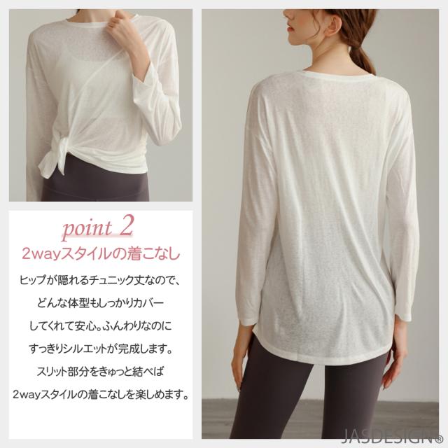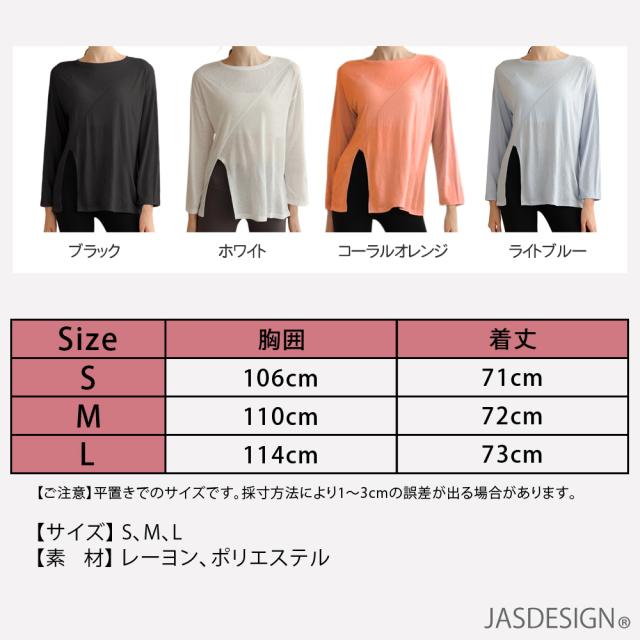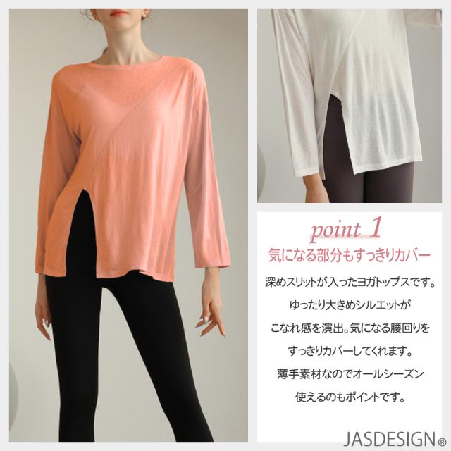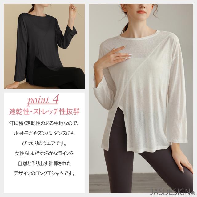 ヨガウェア トップス ロング丈 長袖 シャツ レディース サイドスリット かわいい おしゃれ ゆったり ヒップが隠れる 大きめサイズ フィットネス 体型カバー チュニック チュニック丈 フィットネス ピラティス ウェア トレーニング ダンス 大きいサイズ 送料無料 JM-260