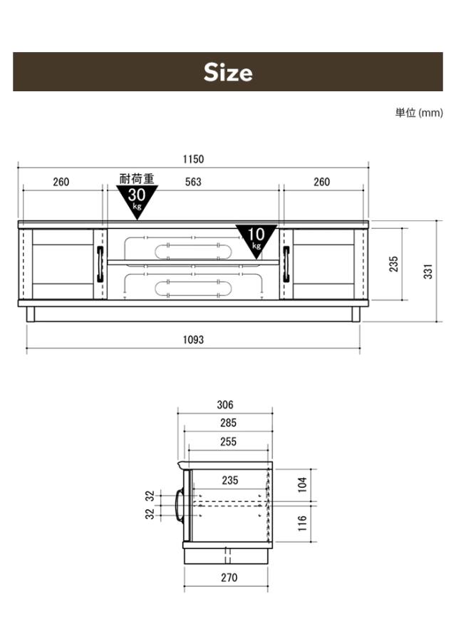 | 約幅115×奥行30.6×高さ33.1cm |