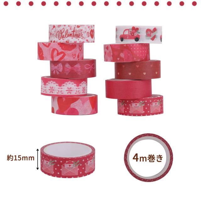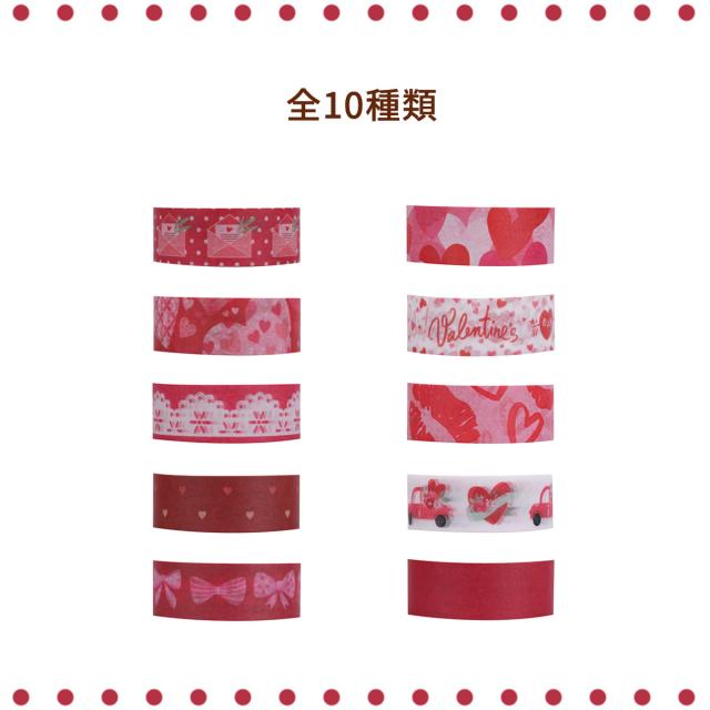 マスキングテープ 10巻セット マステ バレンタイン レッド 15mm×4m ハート リボン ラブレター Valentine day 可愛い かわいい 手帳 手紙 和紙 ラッピング 装飾 デコ 写真 プレゼント diy ハンドメイド デザイン カード 送料無料 yp rm