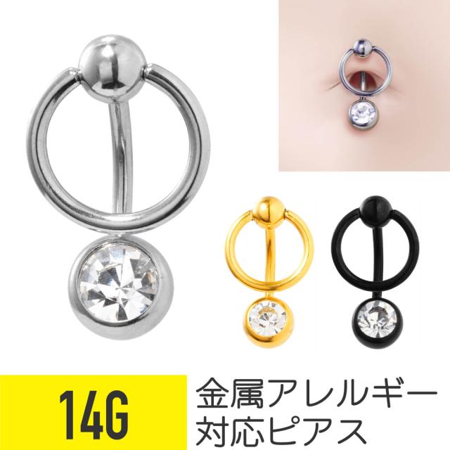 キャプティブ風 ジュエル バナナバーベル 14G サージカルステンレス ジルコニア へそピアス 軟骨ピアス ボディピアス カーブドバーベル