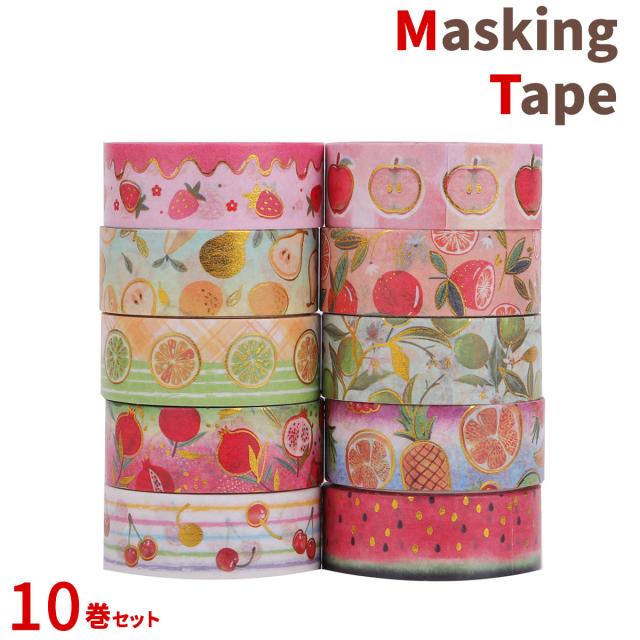 マスキングテープ 10巻セット マステ キラキラ フルーツ 15mm×3m りんご いちご キウイ 洋ナシ レモン スイカ ざくろ 可愛い かわいい 手帳 手紙 和紙 ラッピング 装飾 デコ 写真 プレゼント diy ハンドメイド デザイン カード 送料無料 yp rm