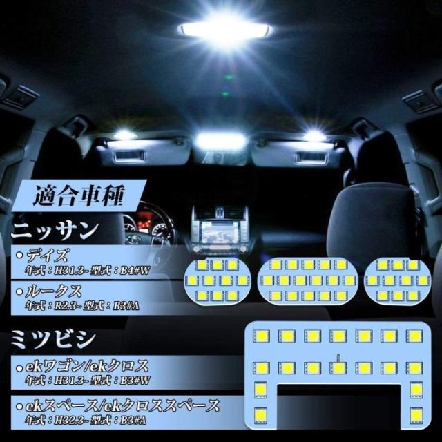 LEDルームランプ デイズ ルークス ekワゴン ekクロス ekスペース ekクロススペース ホワイト 6000K 爆光 室内灯 内装パーツ 専用設計 加工不要 送料無料