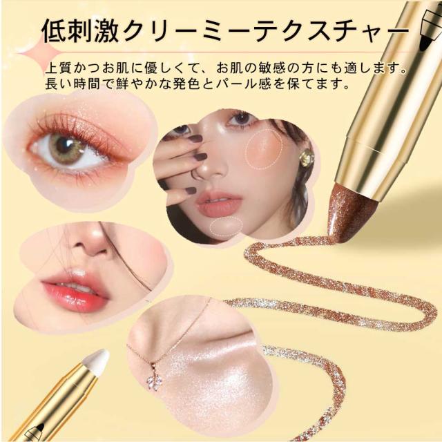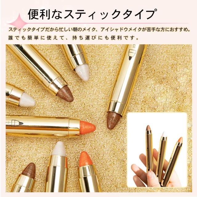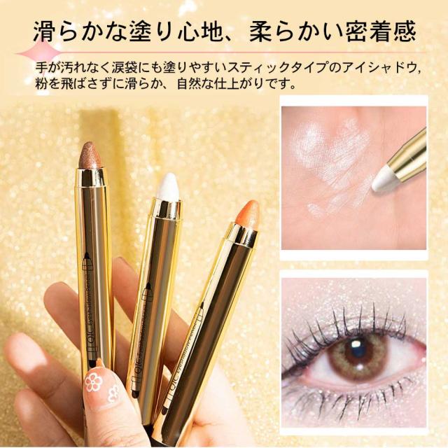 アイシャドウ スティック ペンシル ラメ 単色 防水 長持ち 簡単 時短 キラキラ スポンジチップ付き 2WAY 涙袋シャドウ アイメイク 初心者 コスメ