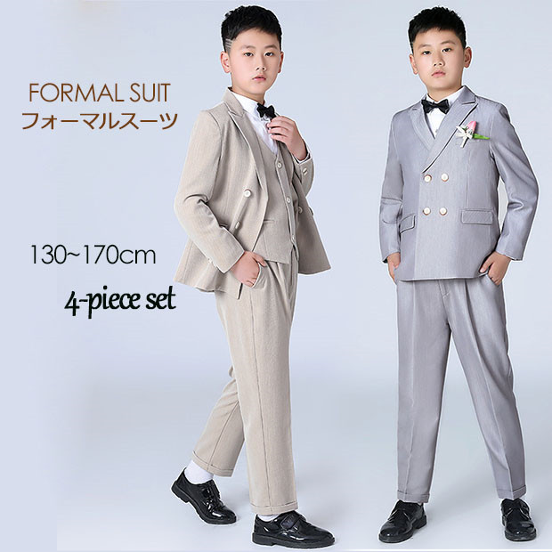 子供スーツ 卒業式 演奏会用 結婚式 フォーマル キッズスーツ ジュニア 七五三 ピアノ発表会 入学式 制服 入園式 5点セットベージュ グレー 男の子 130 140 150 160 170cm dt575c0c0la