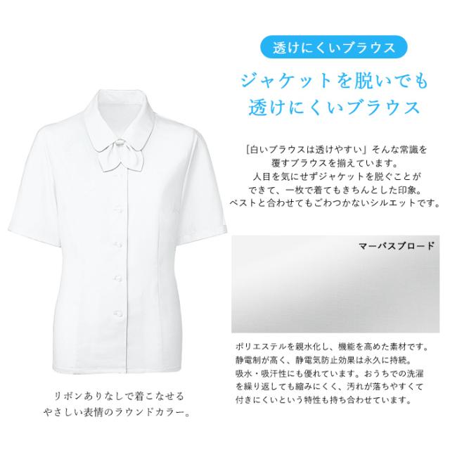事務服 ブラウス レディース 半袖 制服 リボン付き シャツ nuovo 春夏 秋 FOLK【送料無料】白 医療事務 受付 接客 冠婚葬祭 セレモニー フォーマル オフィス スーツ おしゃれ 静電気防止 吸汗 速乾 透け防止 おうちで洗える agesugi_sfa