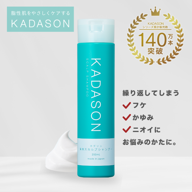 【公式】カダソン薬用スカルプシャンプー / フケ、かゆみ、頭皮湿疹にKADASON / 脂漏性皮膚炎の方にも低刺激なオイルフリー、ノンシリコン / 医薬部外品、250mL(約1ヶ月分)、日本製