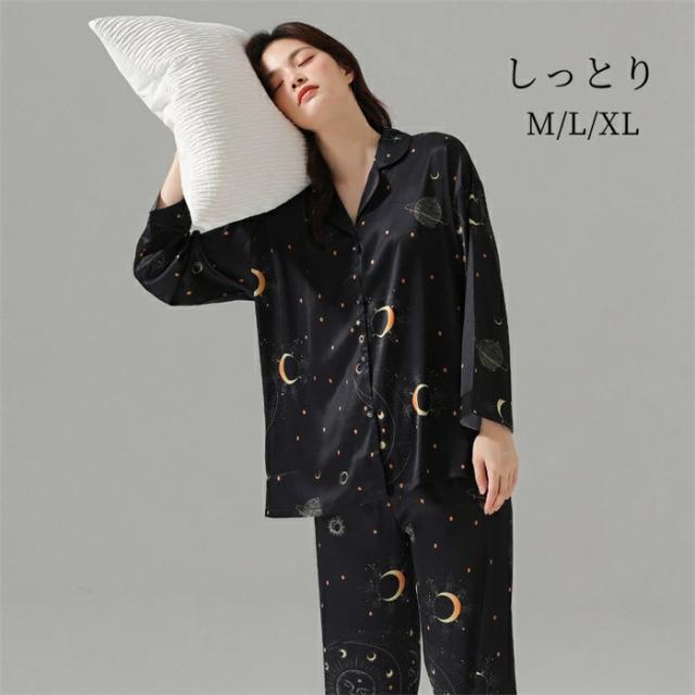 ルームウェア レディース 春夏 パジャマ レディース ルームウェア ワイドパンツ上下セット 可愛いパジャマ 女性 部屋着 寝間き大きいサイズ 快適ルームウェア 長袖 月柄 宇宙柄 部屋着 室内着 ホームウェア 可愛い 大人 シンプル 女性