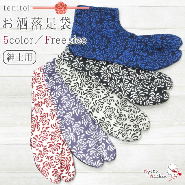 【2足までメール便送料無料】和柄足袋 お洒落足袋 紳士用 和柄 tenitol ソレイユ オーガニック 男性 メンズ 足袋 和装下着 日本製 ナイロン 黒 ベージュ 青 赤 紫 乱菊 フリーサイズ お洒落 和 レトロ