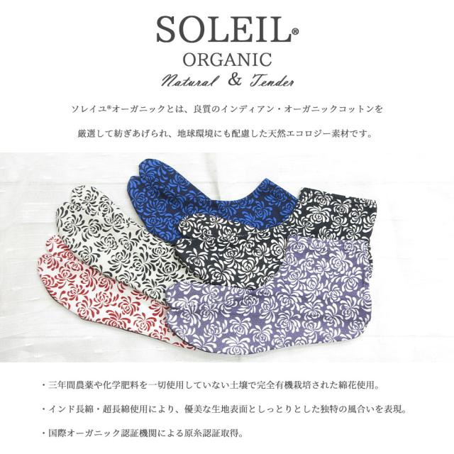 履き心地の良い生地、有機栽培の綿糸「ソレイユオーガニック」を使用。