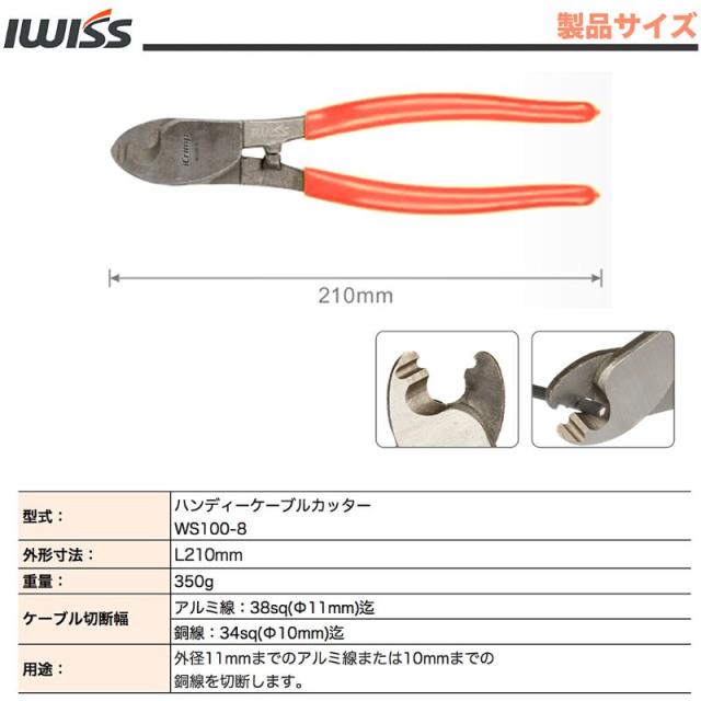 ケーブルカッター ワイヤーカッター 切断工具 ハンディー ケーブル ワイヤー カッター ハンディカッター アイクリンプ IWISS アイウィス 外径11mm迄 WS100-8