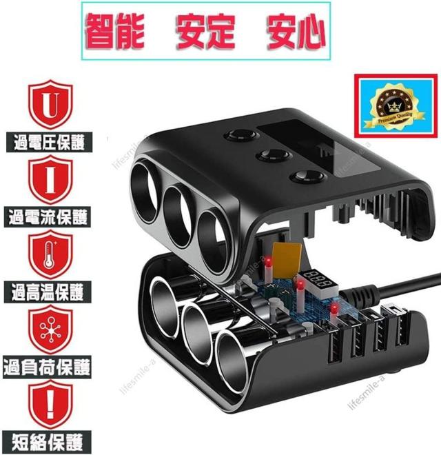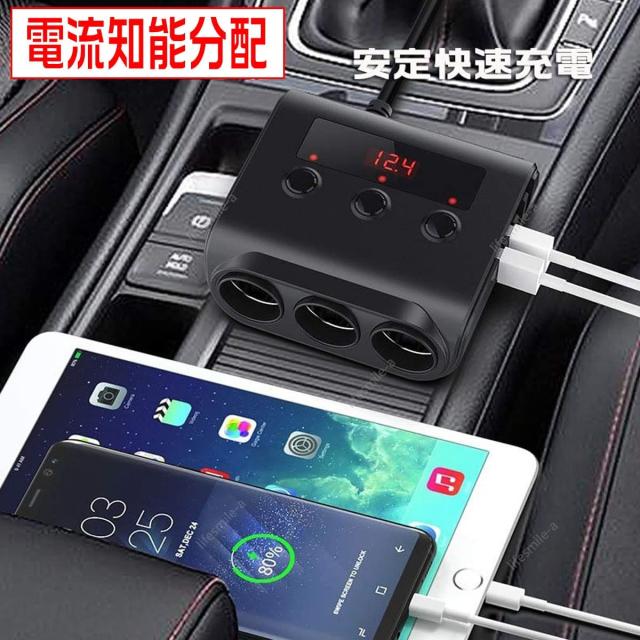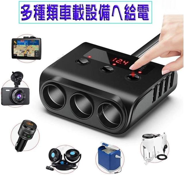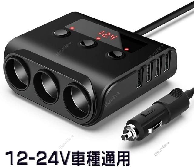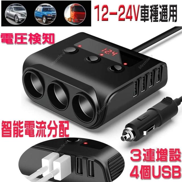 シガーソケットチャージ 3連増設 シーガーソケット増設 車載USB充電器 4USB 車内充電器 自動車USB充電器 知能電圧表示 12ー24V車種通用 車中泊 (ブラック)