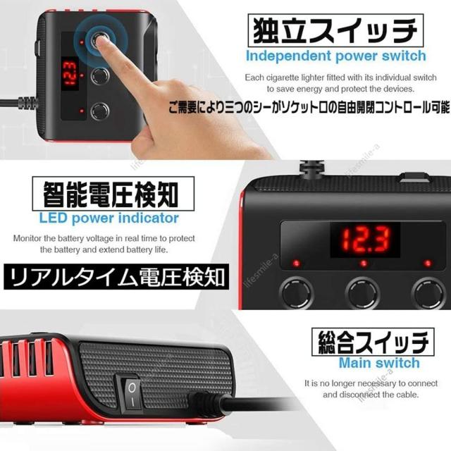 シガーソケットチャージ 3連増設 車載4USB充電器