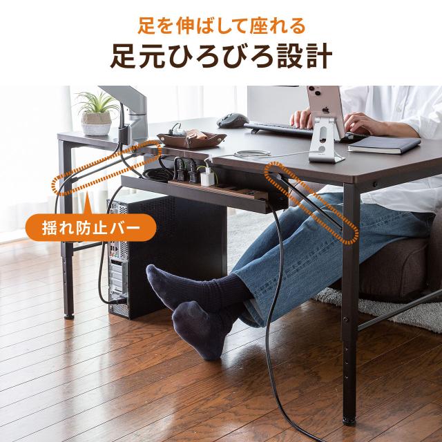 ローデスク ローテーブル 高さ調整 5段階調整 幅100cm 奥行60cm タップ受け パソコンデスク パソコンテーブル ゲーミング ブラウン[100-DESKL016M]