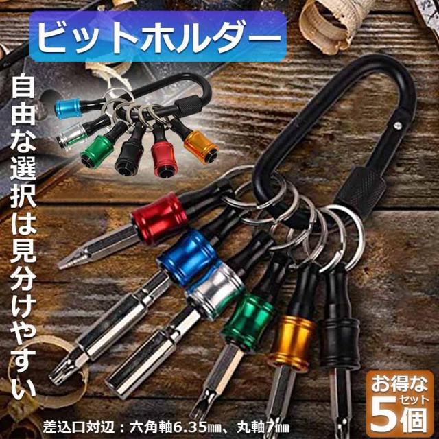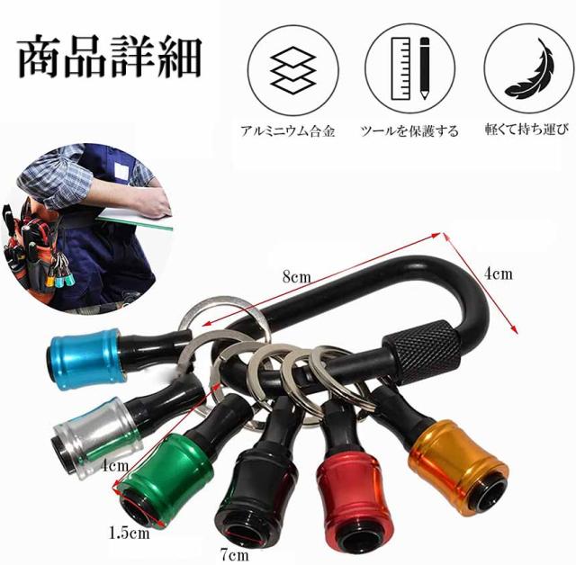 ●5色ビットホルダーの自由な選択は見分けやすく、高品質のカラビナはより持ち運びやすく、難しいシーンでの作業に便利です。●ビットホルダーの差込口対辺:六角軸6.35mm、丸軸7mm。軸6.35mm (1/4インチ)のビット&ソケットなど使用できます。カラビナ付き。