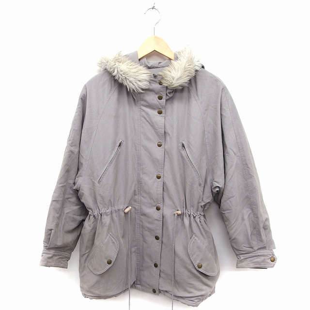 【中古】Pat Hogue フーデッド 中綿 コート アウター ミディ丈 無地 フェイクファー グレー /FT1 レディース