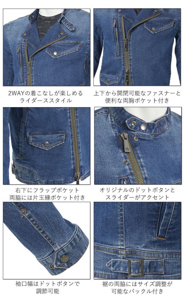 作業服 作業着 ROCKY ロッキー 秋冬 男女兼用 ユニセックスライダースジャケット デニム RJ0916 ボンマックス
