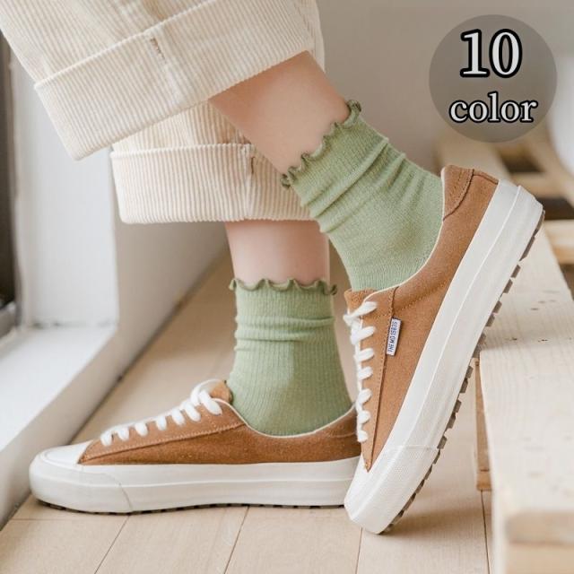 クルーソックス クルー丈 ソックス レディース 女性 靴下 リブ フリル メロウフリル 無地 シンプル かわいい ガーリー おし