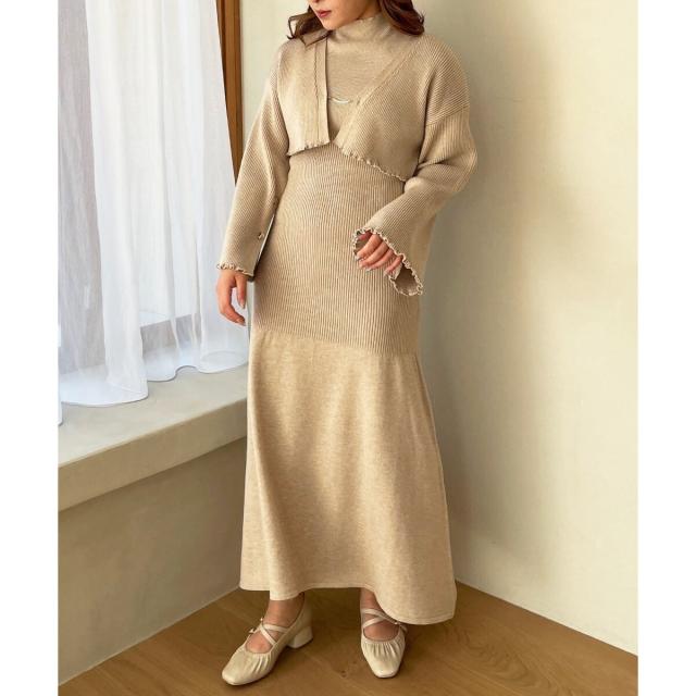 スタイルアップ間違いなし!ヘルシーな肌見せが叶うセットニットワンピ。