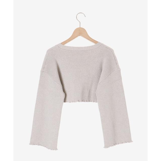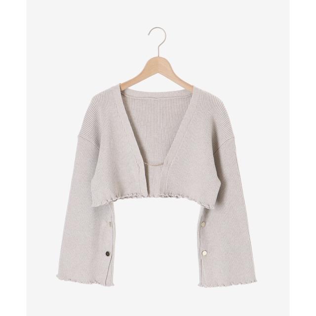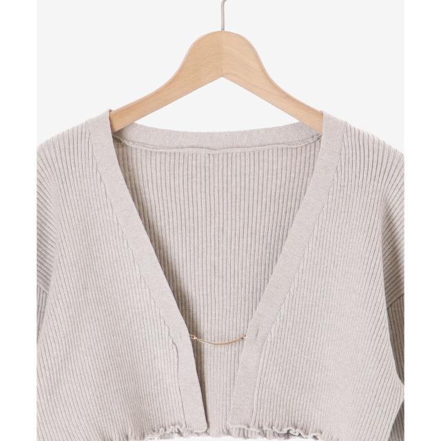 カーディガンはトレンドのクロップド丈でフロントのビットがアクセントに。