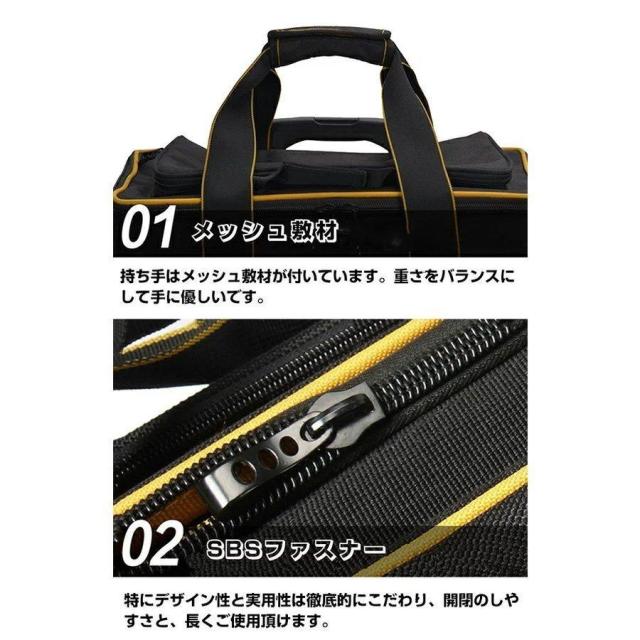 【大容量】全面プロ仕様、多機能40ポケット配置しております。小型工具から電動工具まで収納可能です。