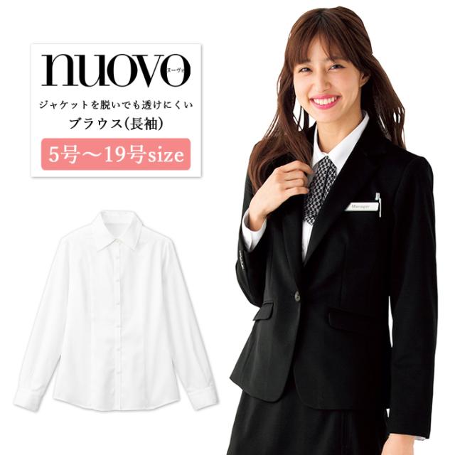 事務服 ブラウス レディース 長袖 制服 開襟 シャツ nuovo 春夏 秋冬 FOLK【送料無料】白 ホワイト 医療事務 受付 接客 冠婚葬祭 セレモニー フォーマル オフィス スーツ カッターシャツ ワイシャツ 透け防止 おうちで洗える agesugi_sfa
