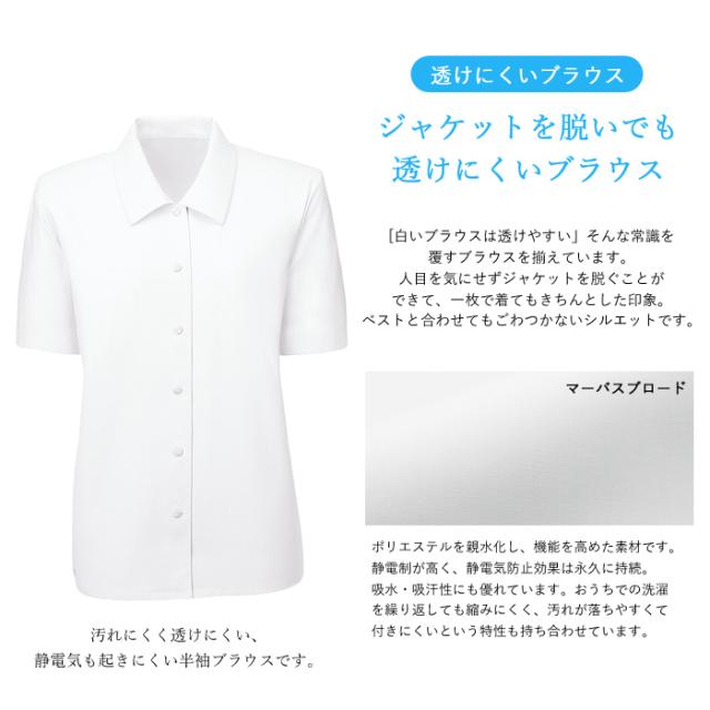 汚れにくく透けにくい、静電気も起きにくい、おうちで洗濯もできる半袖ブラウス。