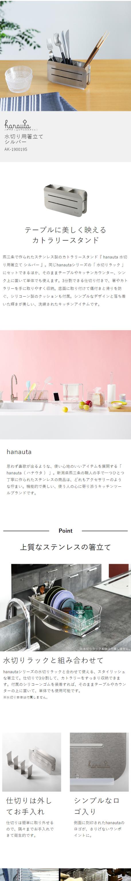 [ hanauta 水切り用箸立て シルバー ]箸立て hanauta ハナウタ 単品 ステンレス カトラリースタンド 日本製 燕三条 カトラリー収納 おしゃれ シンプル カトラリーケース 水切り キッチン収納 ビーワーススタイル AK-190019S【送料無料】