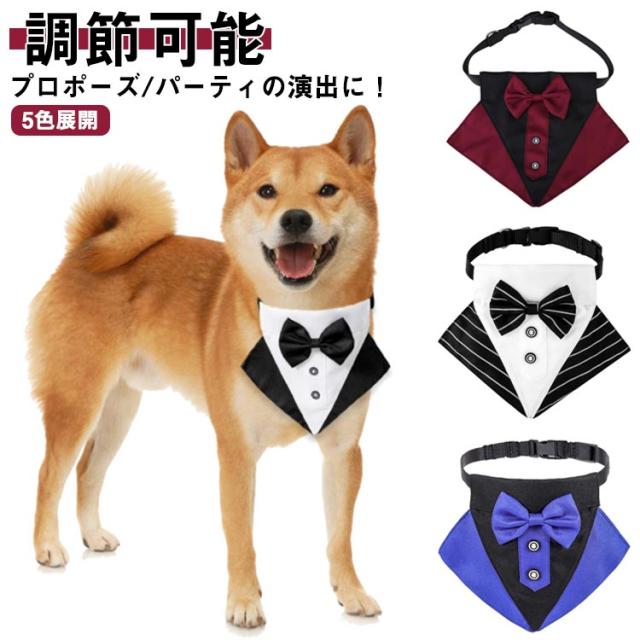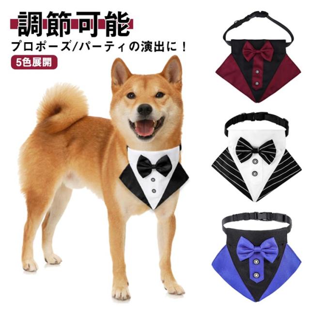 5色展開 犬 蝶ネクタイ 首輪 プロポーズ 結婚式 小型犬 中型犬 大型犬 猫用 フォーマル ドッグタキシードバンダナ 調節可能 コスチューム お祝い パーティー 記念 写真 散歩 お出掛け