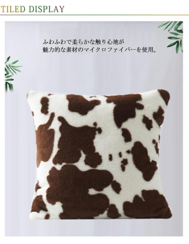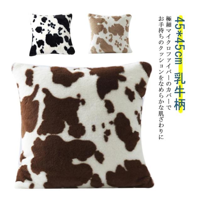 送料無料 クッションカバー 45×45cm 乳牛柄 マイクロファイバー シャギー ふわふわ クッション カバー ファー おしゃれ 北欧 かわいい 冬 秋 ピロー カバー 洗える 暖かい あったか クッション用カバー 動物 アニマル柄 インテリア 模様替え プレゼント ギフト