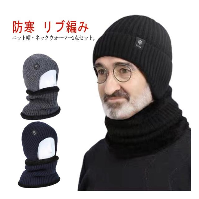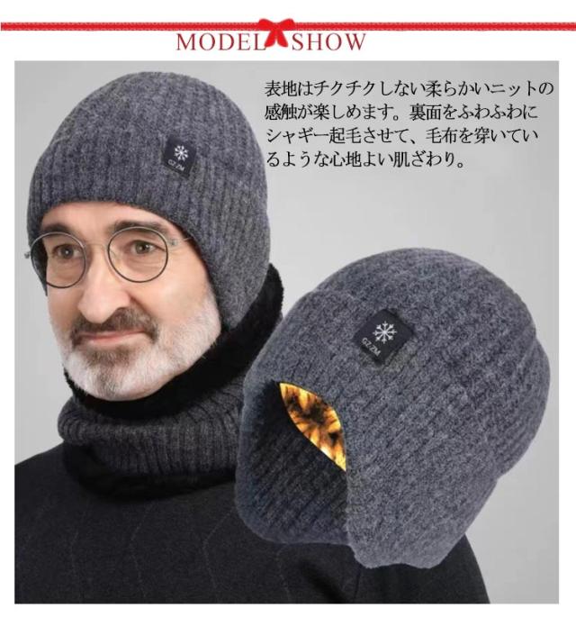 送料無料 ニット帽 ネックウォーマー 2点セット メンズ 裏起毛 裏ジャギー ニット帽子 ニットキャップ ニット スヌード マフラー リブ編み 巻き物 帽子 耳当て付き あったか ふわふわ 防寒 保温 春 秋 冬 ストレッチ アウトドア キャンプ ユニセックス