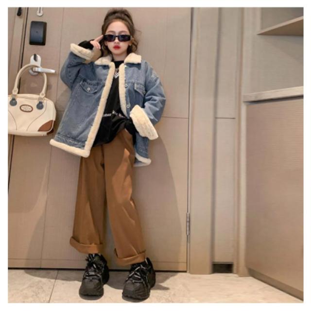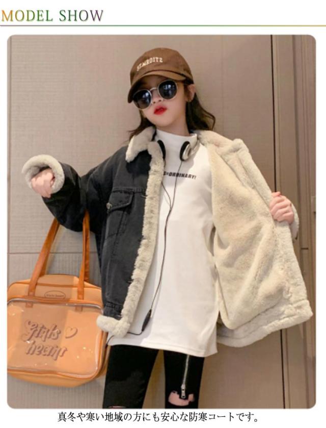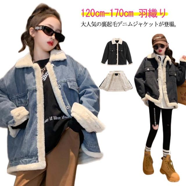 送料無料 デニムジャケット 裏起毛 キッズ ジャケット 子供 裏ファー ジージャン Gジャン 女の子 男の子 子ども アウター 子供服 子ども服 長袖 あったか 暖かい ふわふわ もこもこ エコファー 羽織り ゆったり 秋 冬 ブルゾン 通園 通学 送料無料 120 130 140 150 160 170