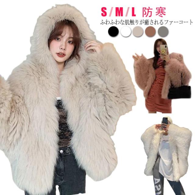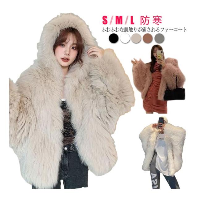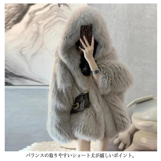 ファーコート レディース ファージャケット フード付き 中綿 エコファー 冬コート ふわふわ もこもこ モコモコ アウター 防寒 あったか 暖かい ジャケット 裏地付き ゆったり ショート丈 おしゃれ きれいめ カジュアル 女性 大人 上品 オフィス 通勤 二次会 秋冬 送料無料