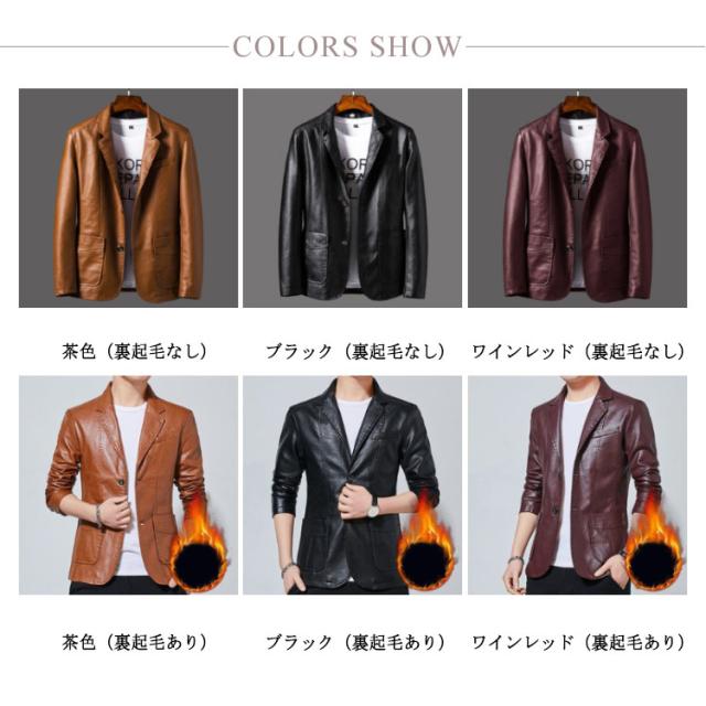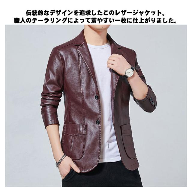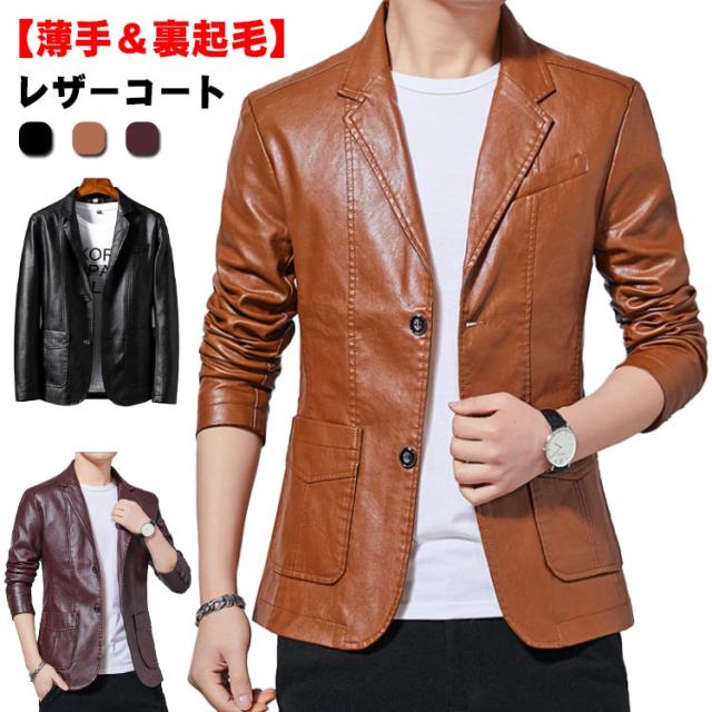 【薄手&裏起毛】レザーコート メンズ レザージャケット 革ジャン 皮ジャン ショート 防寒 ジャケット メンズ アウター ジャケット スーツコート PU 大きいサイズ 赤 黒 きちゃ