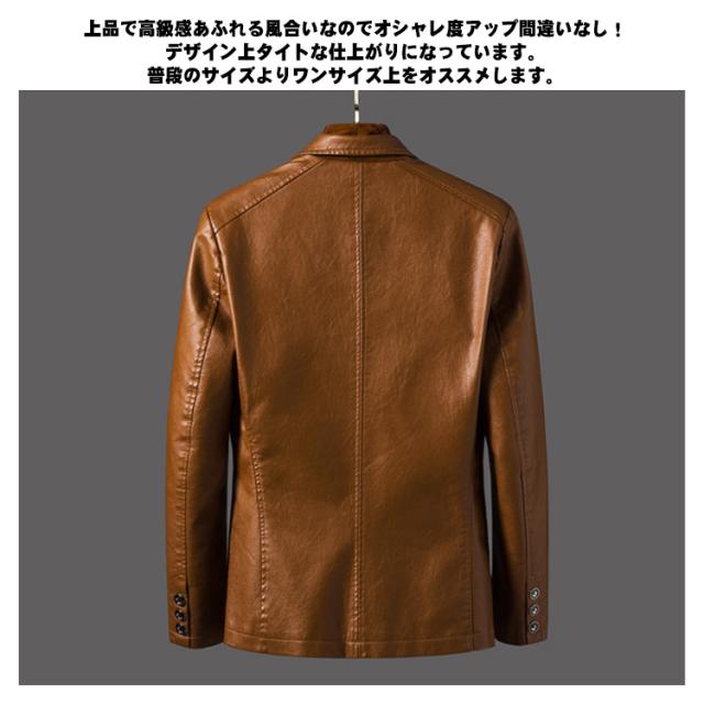 | 上品な光沢感を持つ高級レザーを使用したテーラードレザージャケット。伝統的なデザインを追求したこのレザージャケット。職人のテーラリングによって着やすい一枚に仕上がりました。 シルエットは程よくゆとりを持たせた着心地の良いテーラードレザージャケットに仕上がりました。肌触りの良いポリエステル素材を採用し、快適な着心地を実現しました。 上品で高級感あふれる風合いなのでオシャレ度アップ間違いなし!デザイン上タイトな仕上がりになっています。普段のサイズよりワンサイズ上をオススメします。 通常サイズより小さめに設計されたため、普段着用サイズより1つ上のサイズをおすすめします。ゆったり感が好きな方は2つ上のサイズをおすすめします。 | |