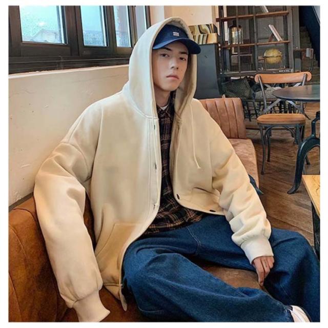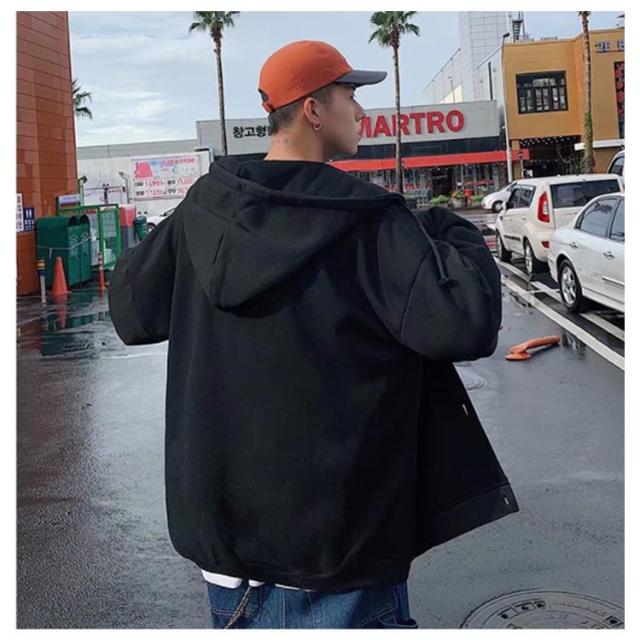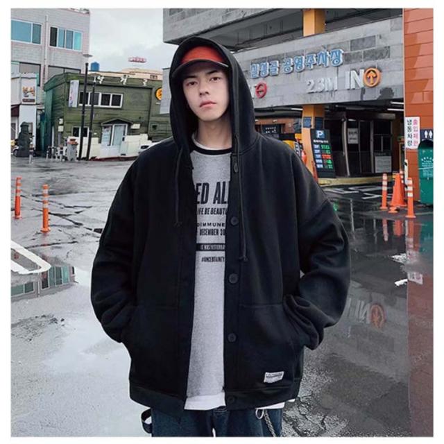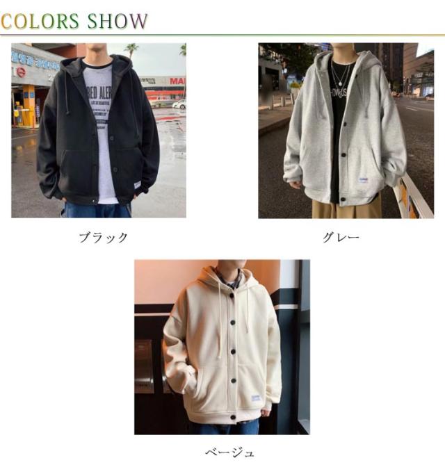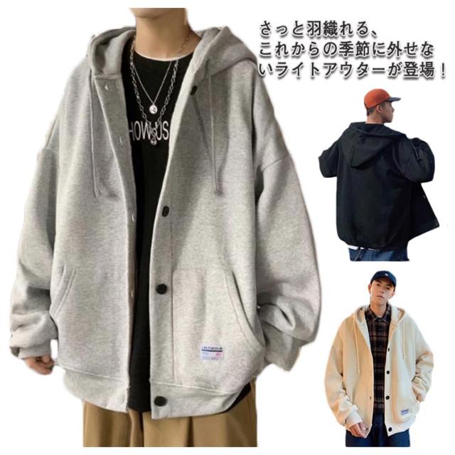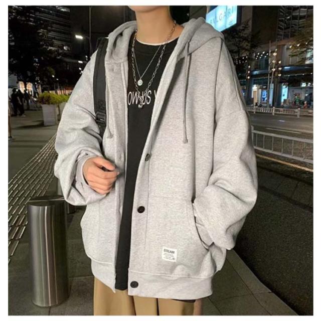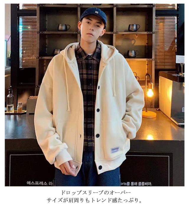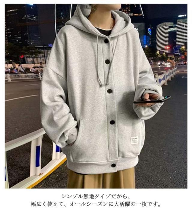 パーカー スタジャン ビッグシルエット ブルゾン メンズ ゆったり ジャンパー 前開き 大きいサイズ フード付き トップス ボタン カーディガン 春 秋 冬 カジュアル アウター ジャケット スウェット 無地 通学 送料無料