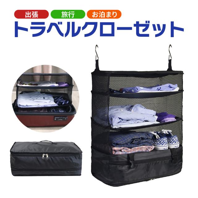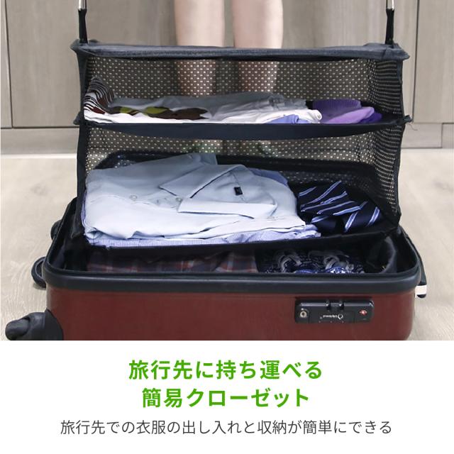 【旅行先に持ち運べる簡易クローゼット】旅行先での衣服の出し入れと収納が簡単にできる。