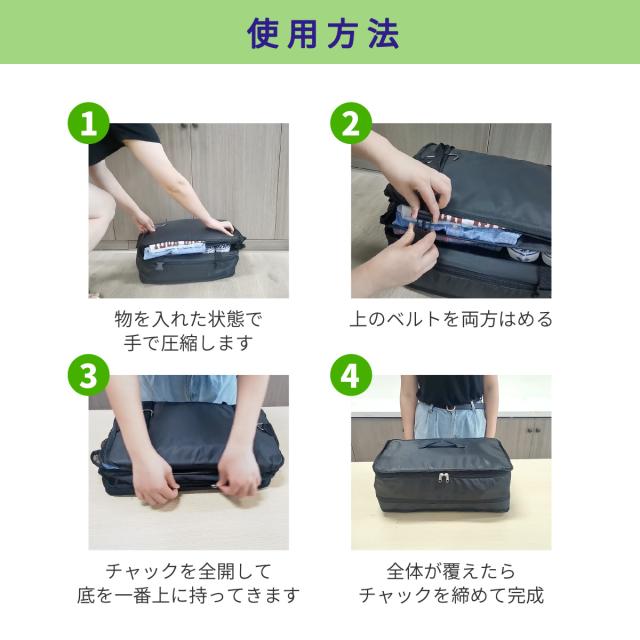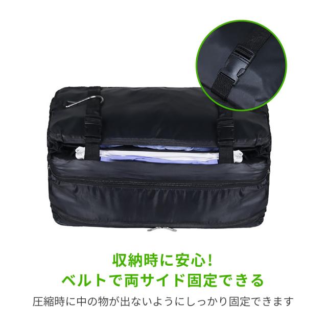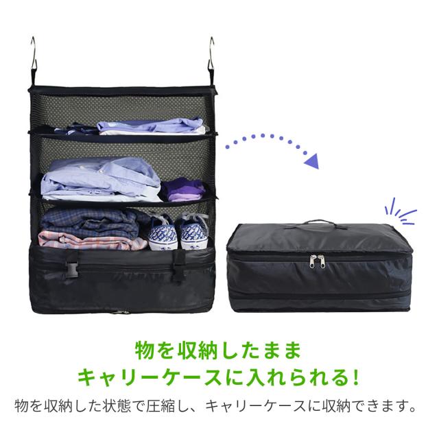 【収納したままキャリーケースに入れられる】物を収納した状態で圧縮し、キャリーケースに収納できます。