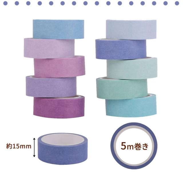 マスキングテープ 10巻セット マステ 寒色 無地 15mm×5m パステル パープル ブルー ミント 可愛い かわいい 手帳 手紙 和紙 ラッピング 装飾 デコ 写真 プレゼント diy ハンドメイド デザイン カード 送料無料 yp