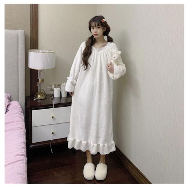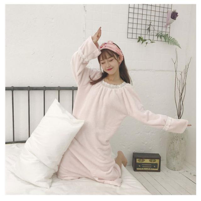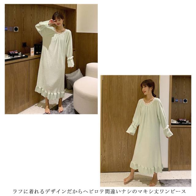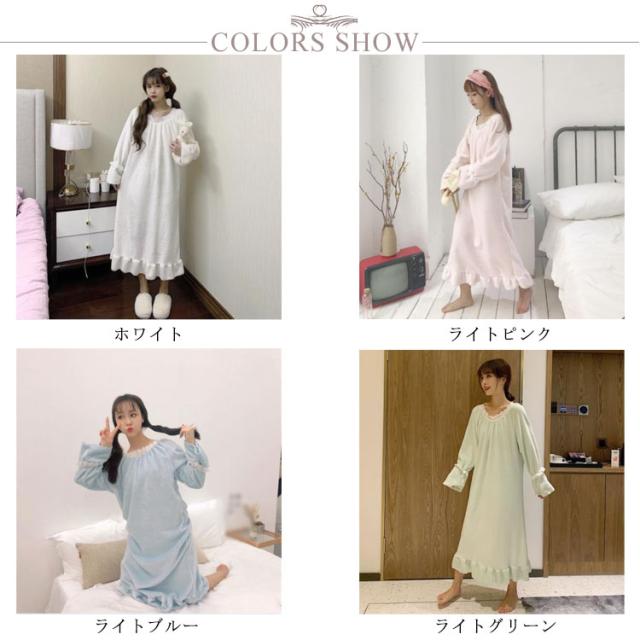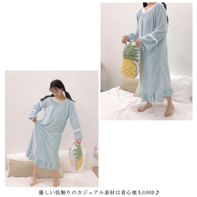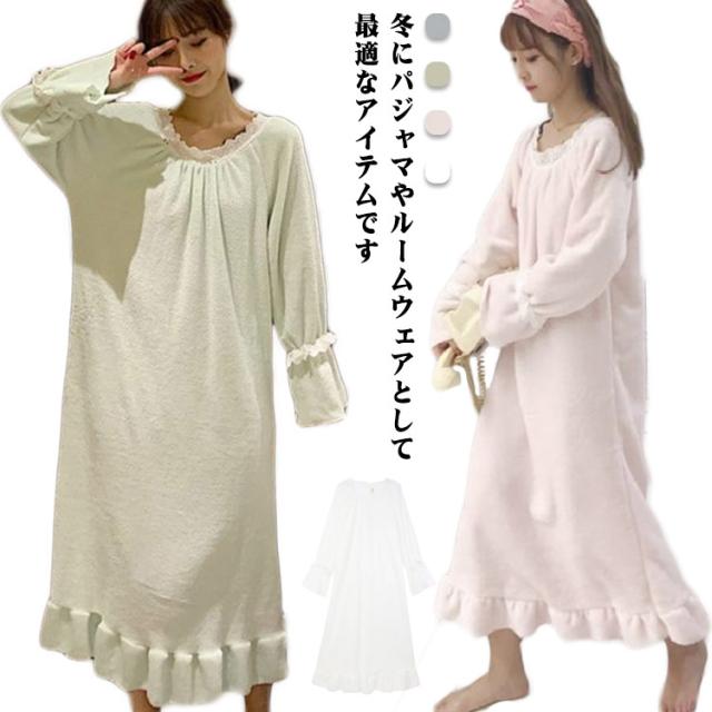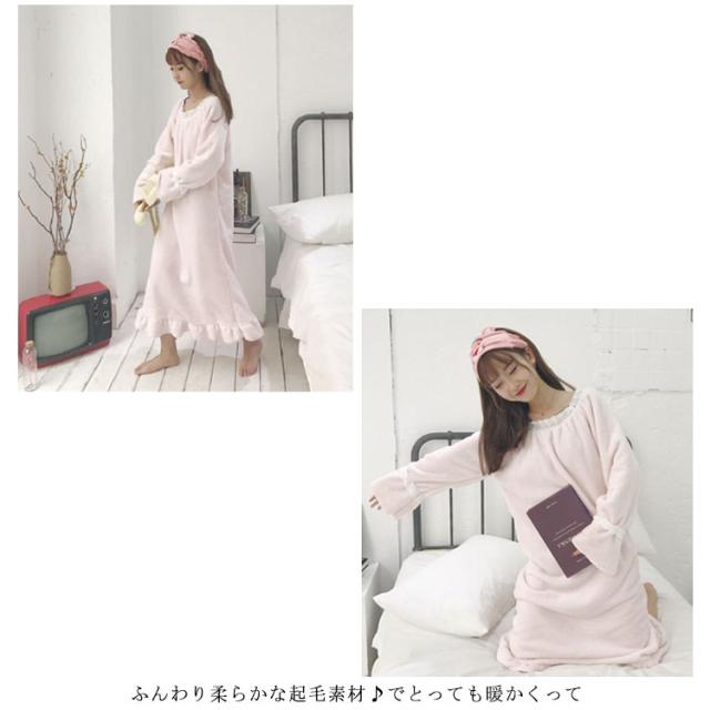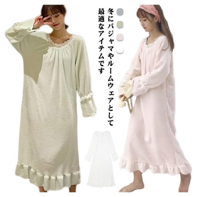 レディース ルームウェア 長袖 もこもこ ワンピース ボア 冬 パジャマ 送料無料 ったり 寝間着 部屋着 着る毛布 秋 厚手 イトウェア 部屋着 ミモレ丈 部屋着 可愛い 寝巻き 厚手