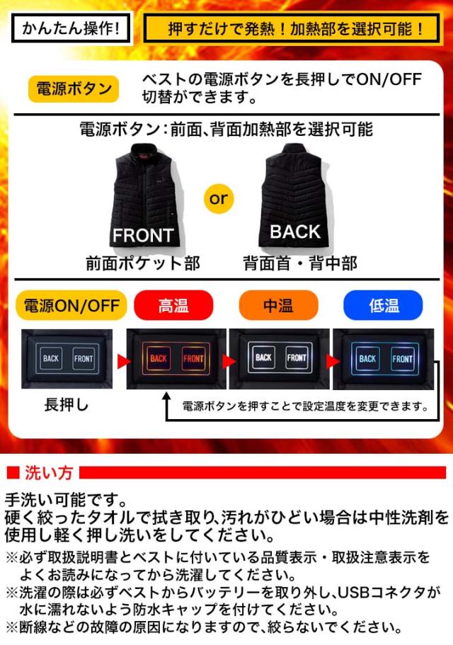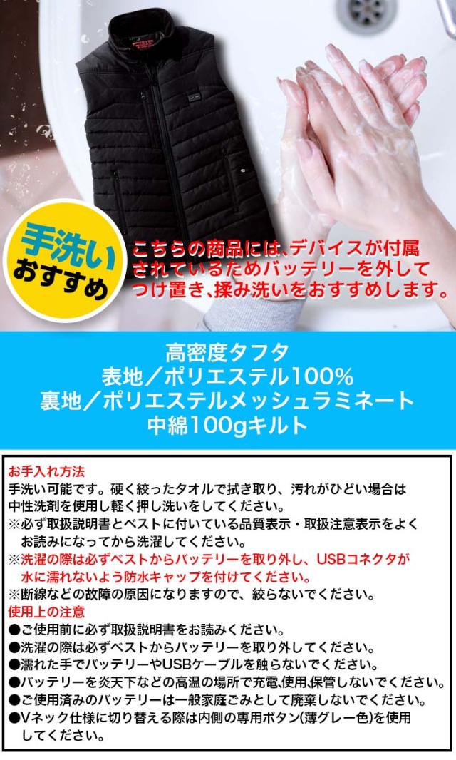 すぐに使えるバッテリー付き。保温性の高い発熱体内蔵型。電熱インナーベスト。