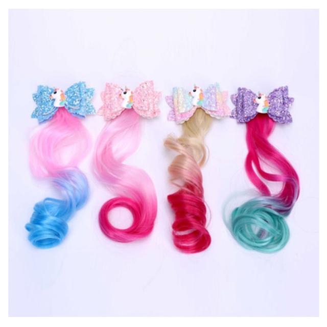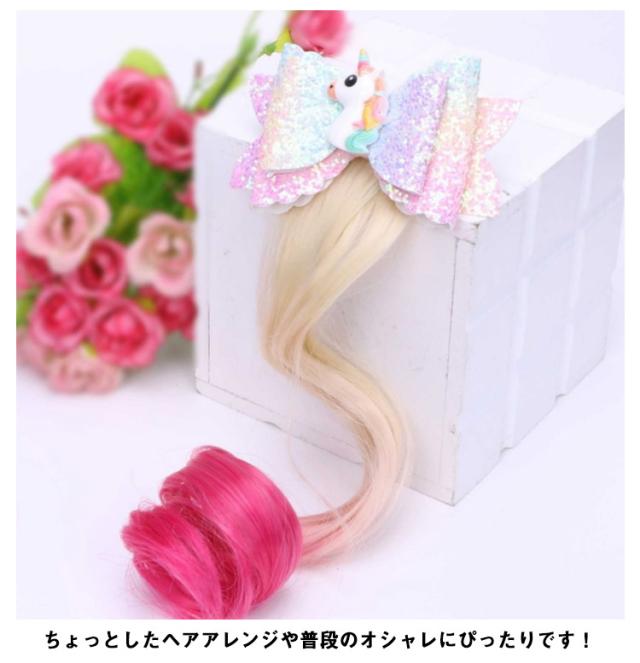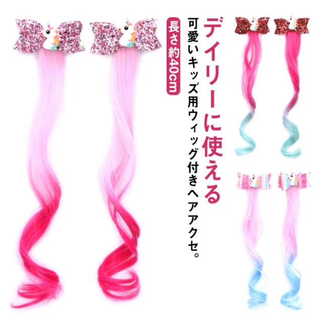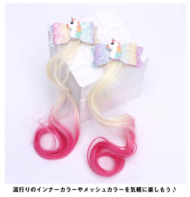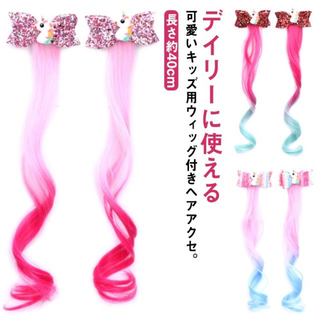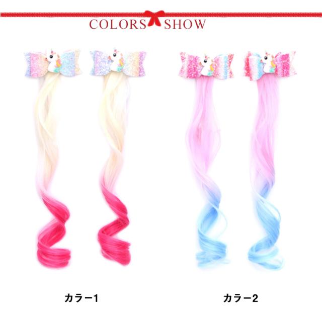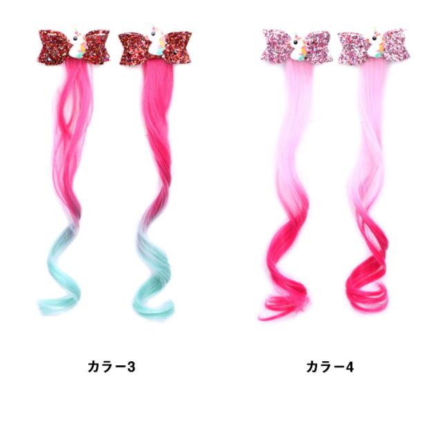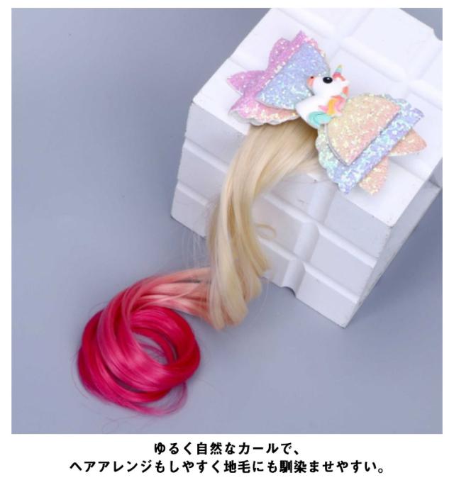 髪飾り ヘアピン キッズ エクステ 付け髪 ウィッグ ワンタッチ つけ毛 メッシュ カラフル カール 【送料無料】グラデーション 部分ウィッグ ポイントウイッグ ヘアアクセサリー カラフル